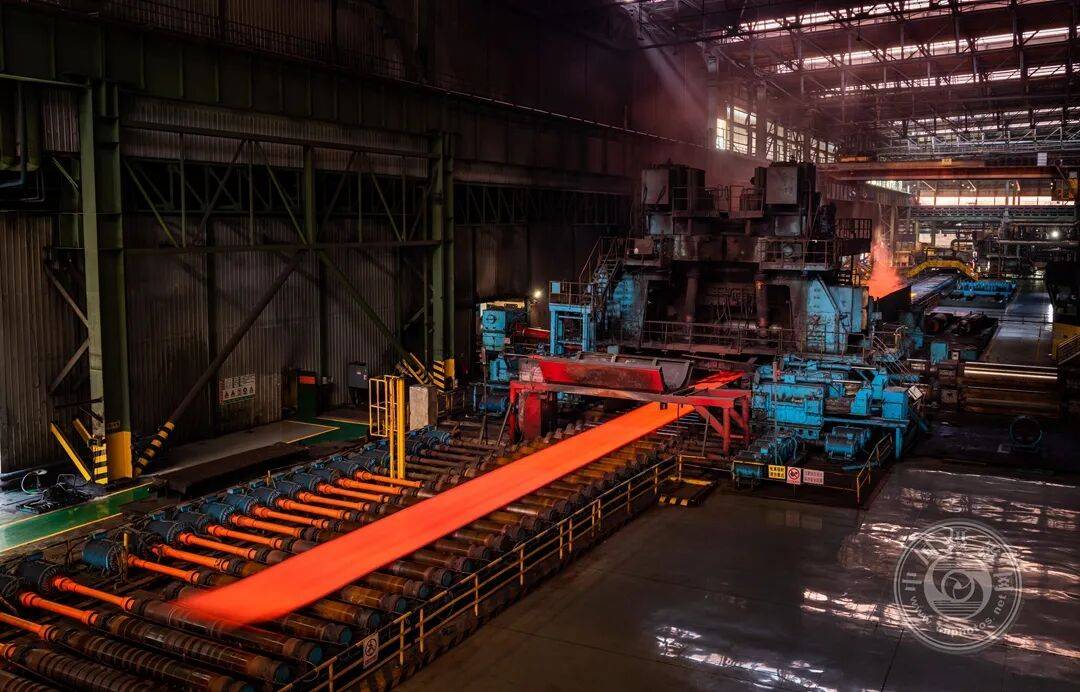 2022年7月拍摄于江西新余,利用慢门拍摄新余钢铁公司的中板自动热轧生产线。