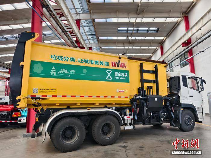 9月19日,江苏扬州,海沃国际集团亚洲区总部车间内展示的车厢可卸式垃圾车。中新社记者 徐珊珊 摄