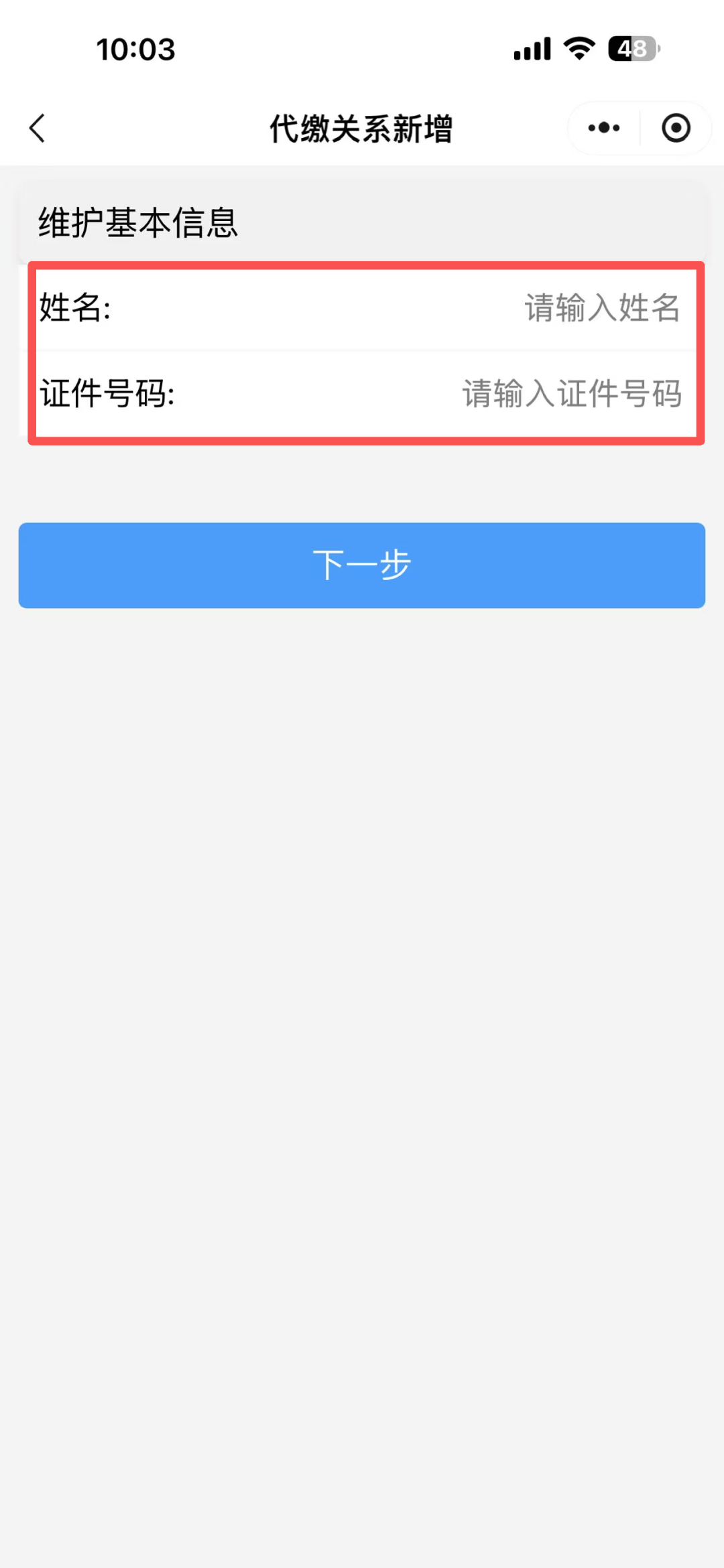 进入“河南税务”小程序后点击“代缴关系维护”,进入后点击代缴关系新增,填写你想为其代缴对象的信息即可