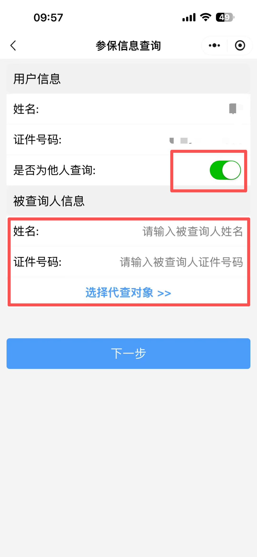 进入“河南税务小程序”,进入参保信息查询模块,勾选“是否为他人查询”,填写信息或选择代查对象进行查询