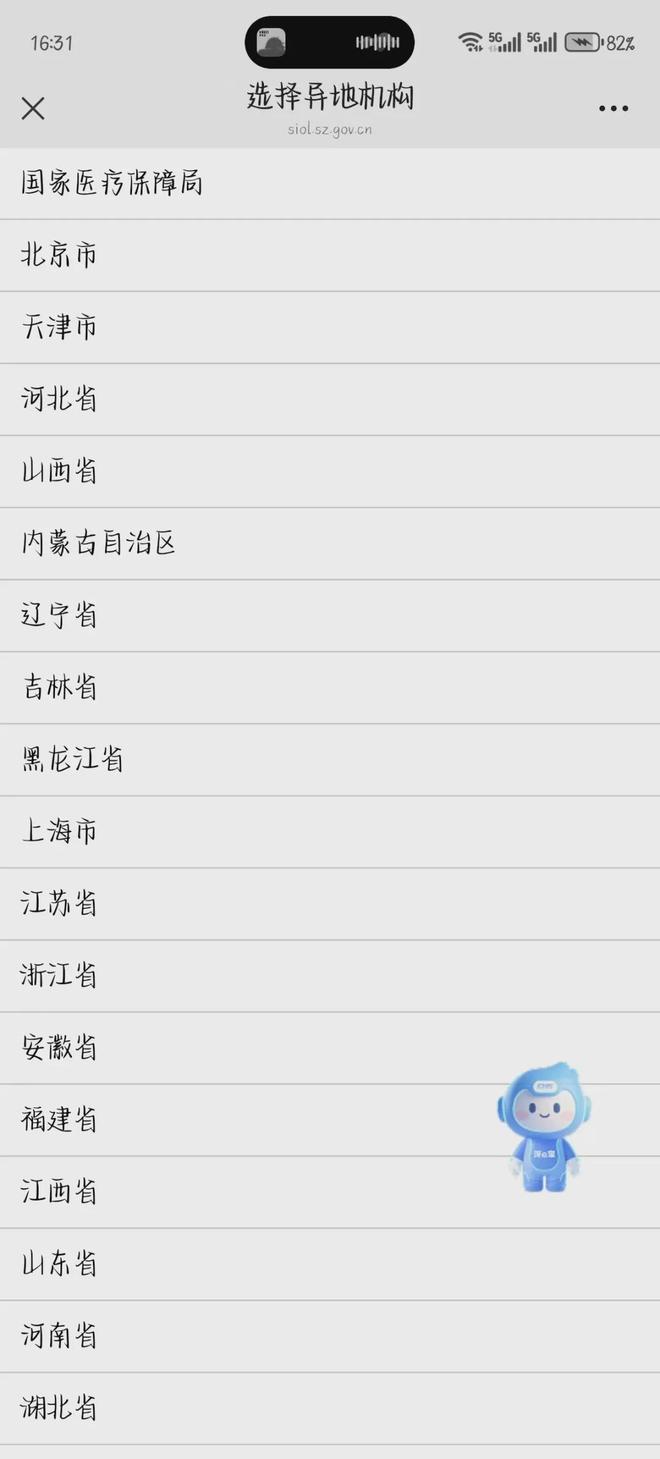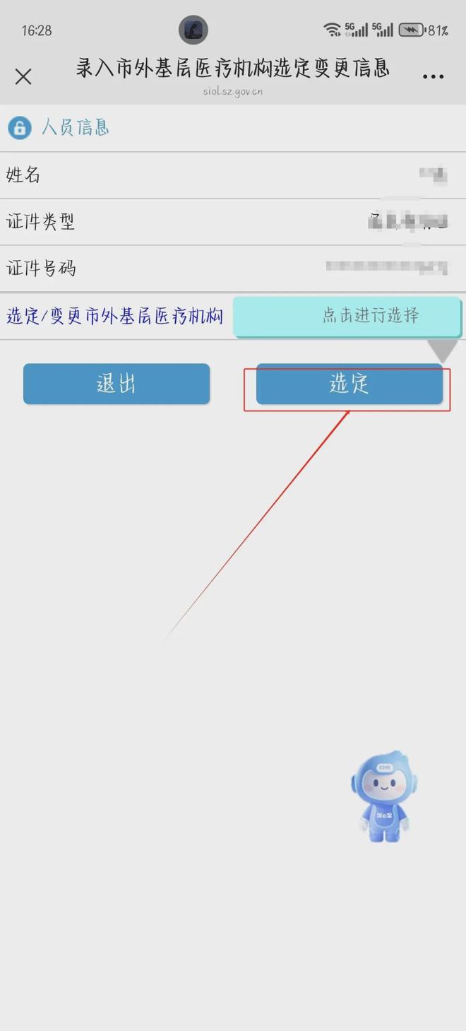 第三步:点击“选定/变更市外基层医疗机构”,确定并点击拟选定/变更机构所属区域,输入关键词搜索,点击拟选定/变更的机构后,最后点击“选定”即可。